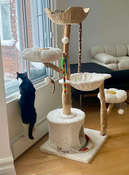 We offer flower-themed trees and sturdy designs for larger breeds to ensure every cat feels included. When a cat has a high vantage point, they feel safe and confident. This reduces anxiety-related scratching. Our partnership with local rescues like Kitty-Kat Refuge has taught us that a stimulated cat is a happy cat. We use these insights to build products that truly work for feline psychology.