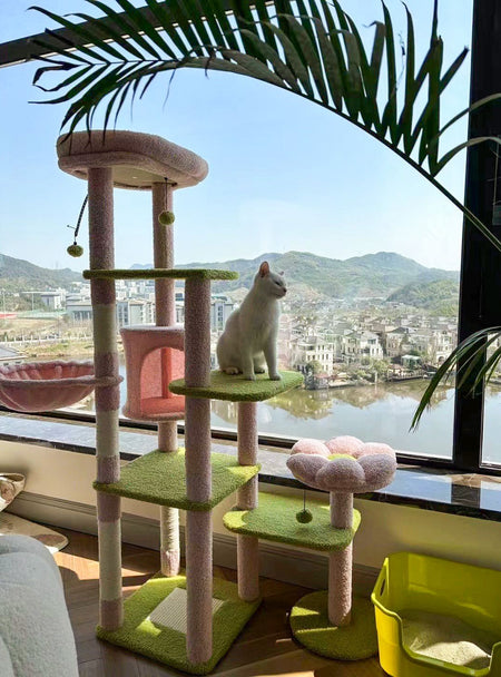 Cat Condo 184cm Multi-Level Pink Flower Cat Tree with Hammock & Posts
